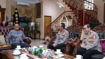 Jakarta. Kepala Divisi Humas Polri Irjen Pol. Sandi Nugroho melaksanakan silaturahmi dan anjangsana ke kediaman Kadivhumas Polri periode 1998 Jenderal Polisi (Purn) Tan Sri Da’i Bachtiar, P.S.M., A.O. Kegiatan ini didampingi oleh para PJU Humas Polri.